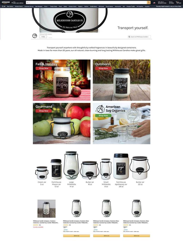 With the essence of the brand defined, Milkhouse Candles now had a clear direction of where to focus their marketing efforts. SCG helped the staff focus on fragrance while creating a system to unite all points of consumer and retail touchpoints: website, print catalogs, email programs, consumer social media channels, Amazon storefront and sales support. Milkhouse is now positioned to stand out and become the standard-maker.