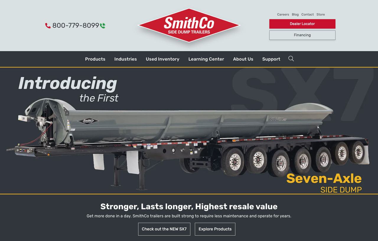 With a high-tide mindset, focus was set on growing the side dump category by stealing share from all trailer types. Research revealed the right messaging, and a content strategy was created to answer the question, “why buy a side dump?” A new website, learning center, sales support, advertising, and trade shows were integrated into a useful tactical plan. As these tactics parlay success, the content shifts to answer a new question, "why buy a SmithCo?"