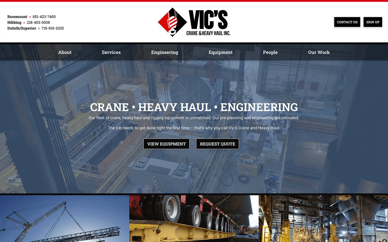 Founded more than 50 years ago, Vic’s Crane and Heavy Haul had a strong entrepreneurial spirit and an expert staff. What stood in the way of growing its business was the lack of a consistent messaging platform and marketing strategy to communicate the benefits of its skilled staff and impressive breadth of equipment.